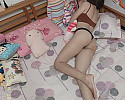 침대위 엎드려있는 처자의 뽀송뽀송 엉덩이