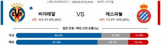 프리메라리가 2월 27일 22:00 비야레알 : RCD 에스파뇰