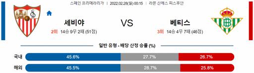 프리메라리가 2월 28일 00:15 세비야 FC : 레알 베티스