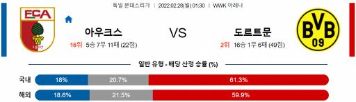 분데스리가 2월 28일 01:30 아우크스부르크 : 보루시아 도르트문트