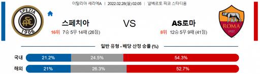 세리에A 2월 28일 02:05 스페치아 칼초 : AS 로마