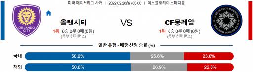 MLS 2월 28일 03:00 올랜도 시티 SC : CF 몽레알