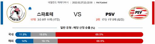 에레디비시 2월 27일 22:30 스파르타 로테르담 : PSV 에인트호번