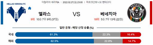 세리에A 2월 27일 23:00 엘라스 베로나 FC : 베네치아 FC