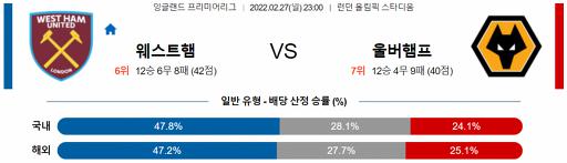 프리미어리그 2월 27일 23:00 웨스트햄 : 울버햄튼