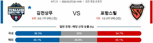 K리그1 2월 27일 14:00 김천 상무 : 포항 스틸러스