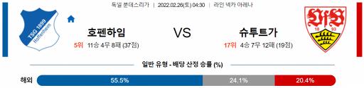분데스리가 2월 26일 04:30 TSG 1899 호펜하임 : VfB 슈투트가르트