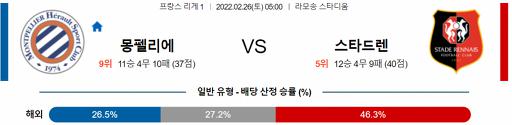 리그앙 2월 26일 05:00 몽펠리에 HSC : 스타드 렌 FC