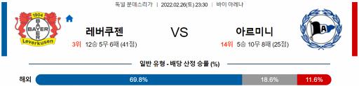 분데스리가 2월 26일 23:30 레버쿠젠 : 아르미니아 빌레펠트