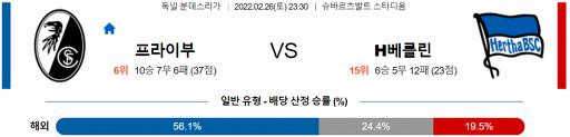 분데스리가 2월 26일 23:30 SC 프라이부르크 : 헤르타 베를린