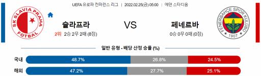 유로파리그 2월 25일 05:00 슬라비아 프라하 : 페네르바흐체
