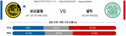 유로파리그 2월 25일 02:45 FK 보되/글림트 : 셀틱