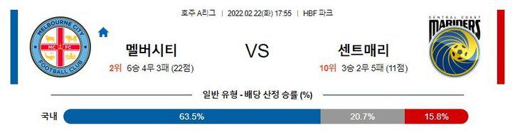 【호주A리그】 2월22일 멜버른시티 vs 센트럴코스트● 멜버른 시티 (리그 2위 / 패승승패승)
