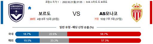리그앙 2월 21일 01:05 지롱댕 드 보르도 : AS 모나코