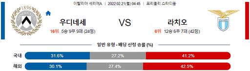 세리에A 2월 21일 04:45 우디네세 칼초 : SS 라치오