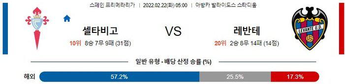 【프리메라리가】 2월 22일 셀타 비고 vs 레반테 UD