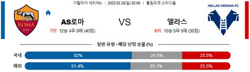 세리에A 2월 20일 02:00 AS 로마 : 엘라스 베로나 FC