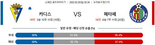 프리메라리가 2월 20일 02:30 카디스 CF : 헤타페 CF