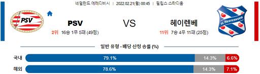 에레디비시 2월 21일 00:45 PSV 에인트호번 : SC 헤렌벤