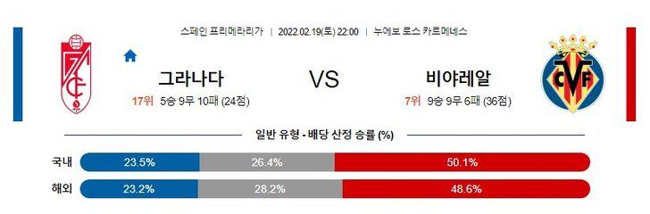 【프리메라리가】 2월19일 그라나다 vs 비야레알최근 리그 6경기에서 승리가 없고 4연패에 빠지며 팀 에너지 레벨이 저조하다. 상대에 비해 전력 또한 열세를 보이며 이번 라운드 역시 승점 확보에 험로가 점쳐진다. 최근 5경기에서 10실점을 허용하고 있는 후방에서의 안정감이 떨어진다. 올 시즌 클린시트가 4번 밖에 되지 않을 정도로 수비력이 불안하고 두아르테-토렌테(CB)의 4백은 공중볼 경합과 일대일 매치업에서 열세를 보인다. 상대에게 주도권을 내주는 경기가 대부분인데 압박 또한 적절하게 이루어지지 않고 간격 조율에 있어서도 잡음이 심하다. 그나마 막시밀리아노(GK)의 선방이 있기에 낮은 실점율을 기록하고 있지만 올 시즌 홈에서 상위 6개의 클럽과의 경기 중 5경기에서 실점을 허용할 정도로 뒷문 제어에 애를 먹었기에 이번 라운드 역시 실점가능성이 높다고 보여진다.