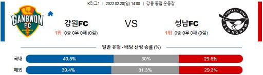 K리그1 2월 20일 14:00 강원 FC : 성남 FC