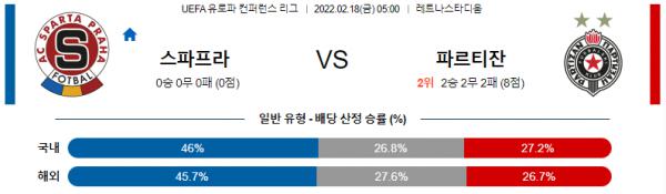 【UEFA 유로파 컨퍼런스리그】 2월18일 스파르타 프라하 vs FK 파르티잔