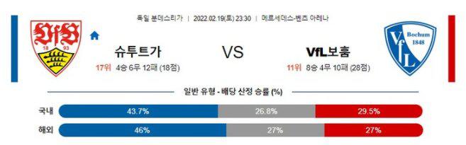 [분데스리가] 2월 19일 슈투트가르트 vs 보훔