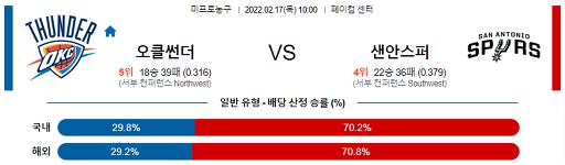 2월 17일 10:00 NBA분석 오클라호마시티 : 샌안토니오