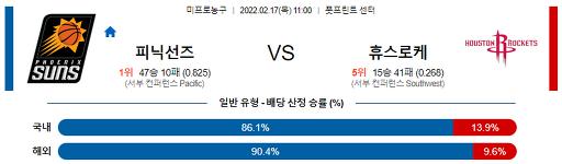 2월 17일 11:00 NBA분석 피닉스 : 휴스턴