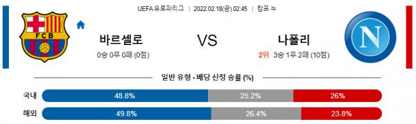열람중 [UEFA유로파] 2월18일 FC 바르셀로나 vs SSC 나폴리 2022.02.17 521