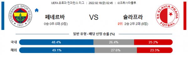 【UEFA 유로파 컨퍼런스리그】 2월18일 페네르바체 SK vs 슬라비아 프라하