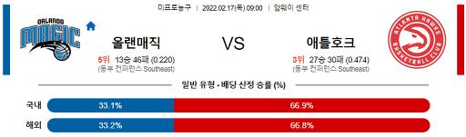 2월 17일 09:00 NBA분석 올랜도 : 애틀랜타