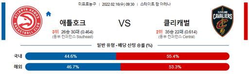 2월 16일 09:30 NBA분석 애틀랜타 : 클리블랜드