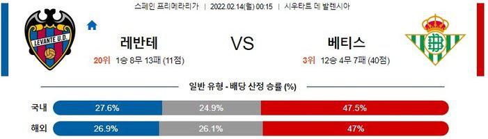 [라리가] 2월 14일 레반테 vs 레알 베티스