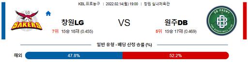 2월 14일 19:00 KBL 창원 LG : 원주 DB
