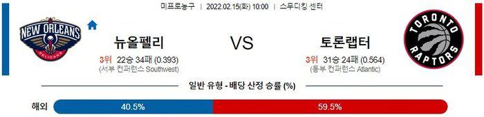 【NBA】 2월 15일 뉴올리언즈 vs 펠리컨스 토론토 랩터스