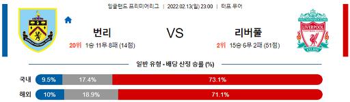 프리미어리그 2월 13일 23:00 번리 : 리버풀