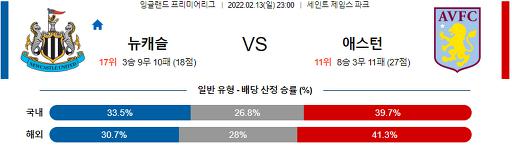 프리미어리그 2월 13일 23:00 뉴캐슬 유나이티드 : 애스턴 빌라