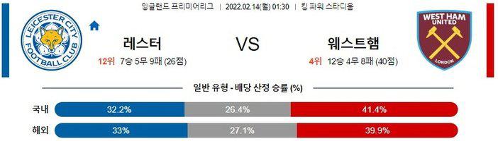 열람중 【프리미어리그】 2월 14일 레스터 시티 vs FC 웨스트햄 2022.02.13 546