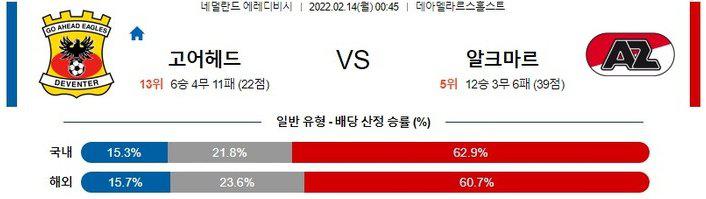 ​[에레디비시] 2월 14일 고 어헤드 이글스 vs AZ 알크마르