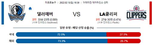 2월 13일 10:30 NBA분석 댈러스 : LA클리퍼스