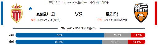 리그앙 2월 13일 21:00 AS 모나코 : FC 로리앙