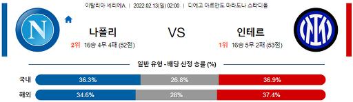 세리에A 2월 13일 02:00 SSC 나폴리 : 인터 밀란