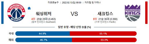 2월 13일 09:00 NBA분석 워싱턴 : 새크라멘토