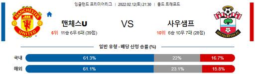 프리미어리그 2월 12일 21:30 맨체스터 유나이티드 : 사우샘프턴