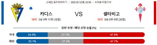 프리메라리가 2월 12일 22:00 카디스 CF : 셀타 비고