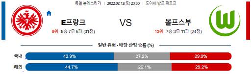 분데스리가 2월 12일 23:30 프랑크푸르트 : VfL 볼프스부르크
