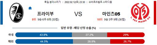 분데스리가 2월 12일 23:30 SC 프라이부르크 : 마인츠