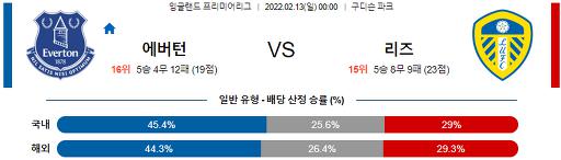 프리미어리그 2월 13일 00:00 에버턴 : 리즈 유나이티드 FC