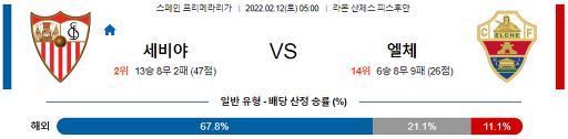 프리메라리가 2월 12일 05:00 세비야 FC : 엘체 CF